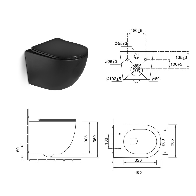 Унитаз подвесной,безободковый, система смыва Tornado (чёрный матовый) SL-5005T-MB