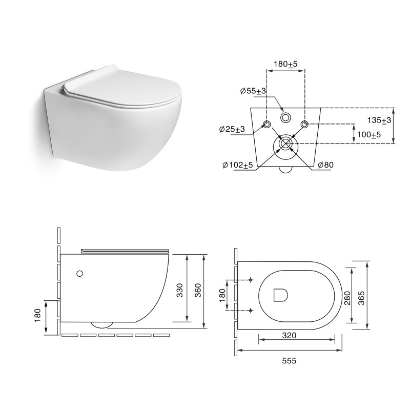 Унитаз подвесной,безободковый, система смыва Tornado (сиденье микролифт) SL-5002T