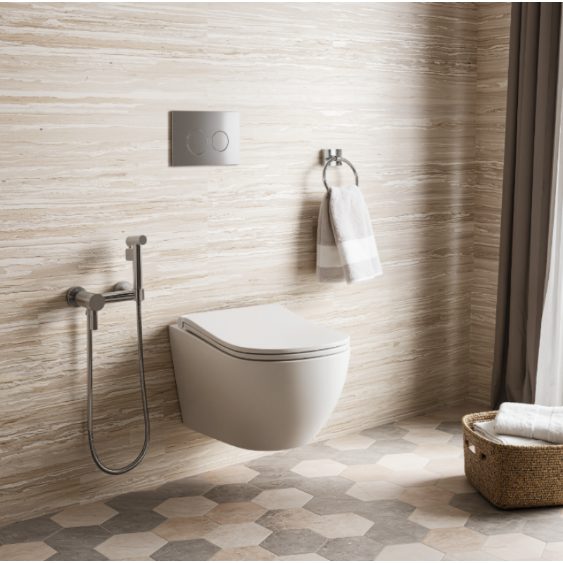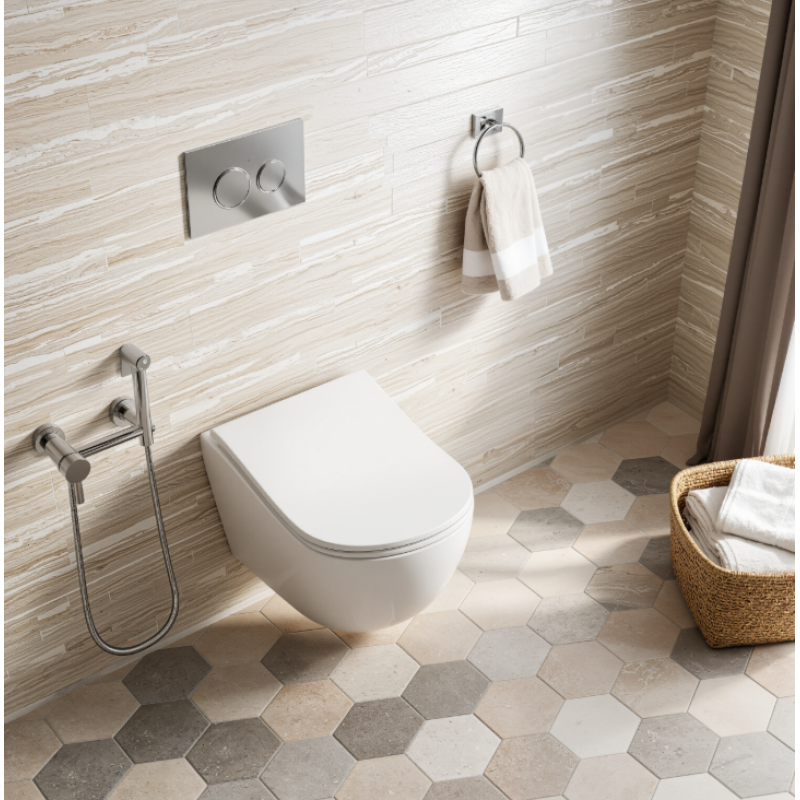 Коллекция подвесных унитазов München - инновационная форма унитаза. Онемение ног при сидении на унитазе чаще всего связано с кратковременным сдавливанием нервных окончаний и сосудов. Эксклюзивная изогнутая форма унитазов с сиденьем DQ обеспечивают равномерное распределение давления на ягодицы и вы можете наслаждаться более удобной и естественной посадкой. Новая форма снижает дискомфорт и усталость, позволяя вам проводить больше времени в расслабленной позе. Изогнутая форма унитаза не только улучшает комфорт, но и заботится о вашем здоровье, делая каждое посещение туалетной комнаты более приятным и удобным, и вы не пропустите ни один новый ролик в ленте. Подвесные унитазы торговой марки DQ производятся из керамического фарфора. Фарфор, как и фаянс, изготавливается на основе белой глины. Состав этого материала отличается повышенной прочностью благодаря добавлению таких укрепляющих компонентов, как кварц и полевой шпат. Используемая для создания основы глина проходит тщательную проверку качества, что обеспечивает итоговой продукции плотную и сверхгладкую поверхность. В отличие от фаянса, фарфоровые сантехнические устройства имеют небольшой коэффициент водопоглощения. Для фарфора свойственен коэффициент водопоглощения в 0,05%. Температура обжига 1280гр.