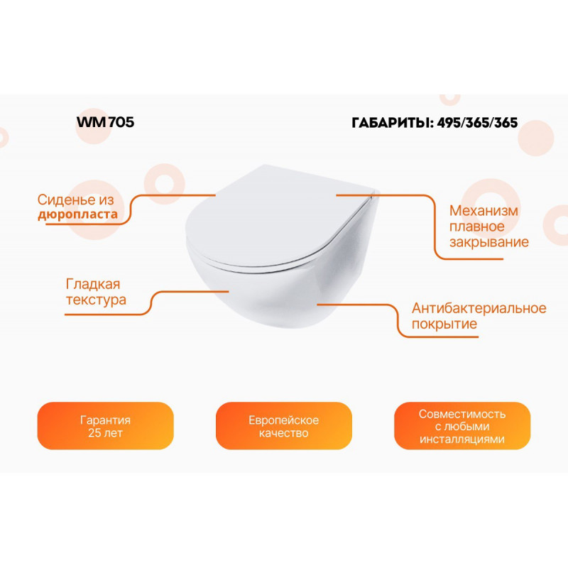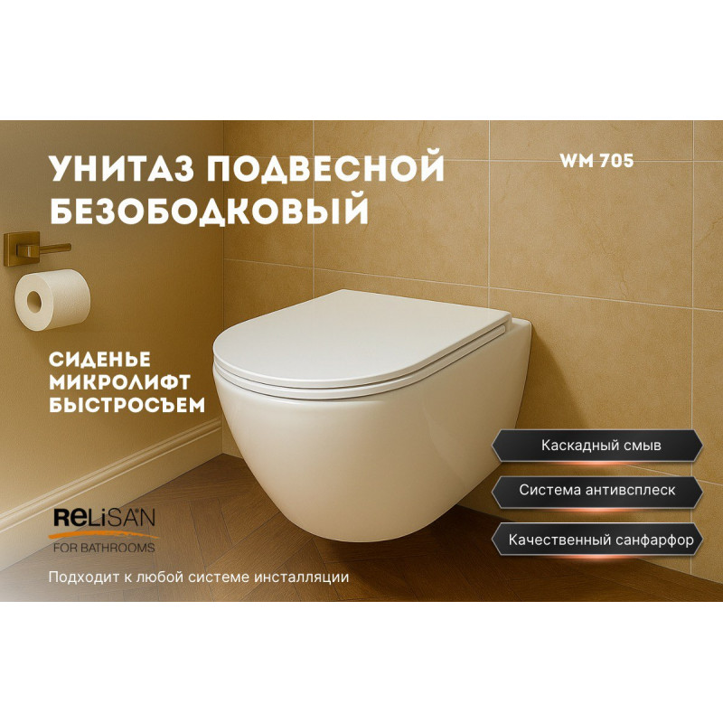 - Сиденье с микролифтом — плавное и бесшумное закрытие;