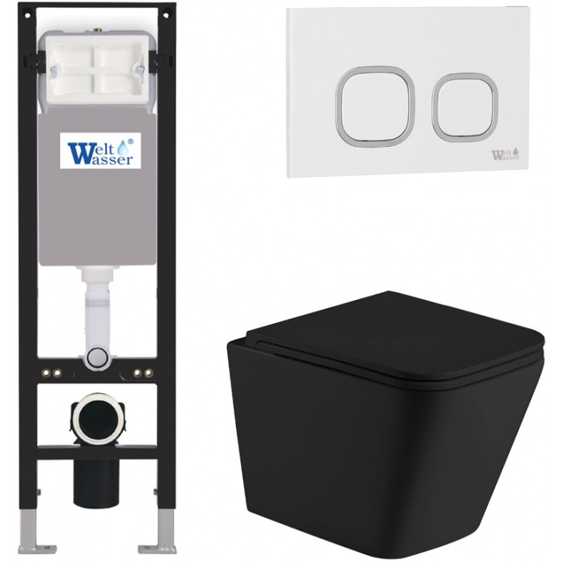 Подвесной унитаз с инсталляцией Weltwasser Amberg 350 / Gelbach 043 MT-BL / Amberg RD-WT 10000012322 черный матовый