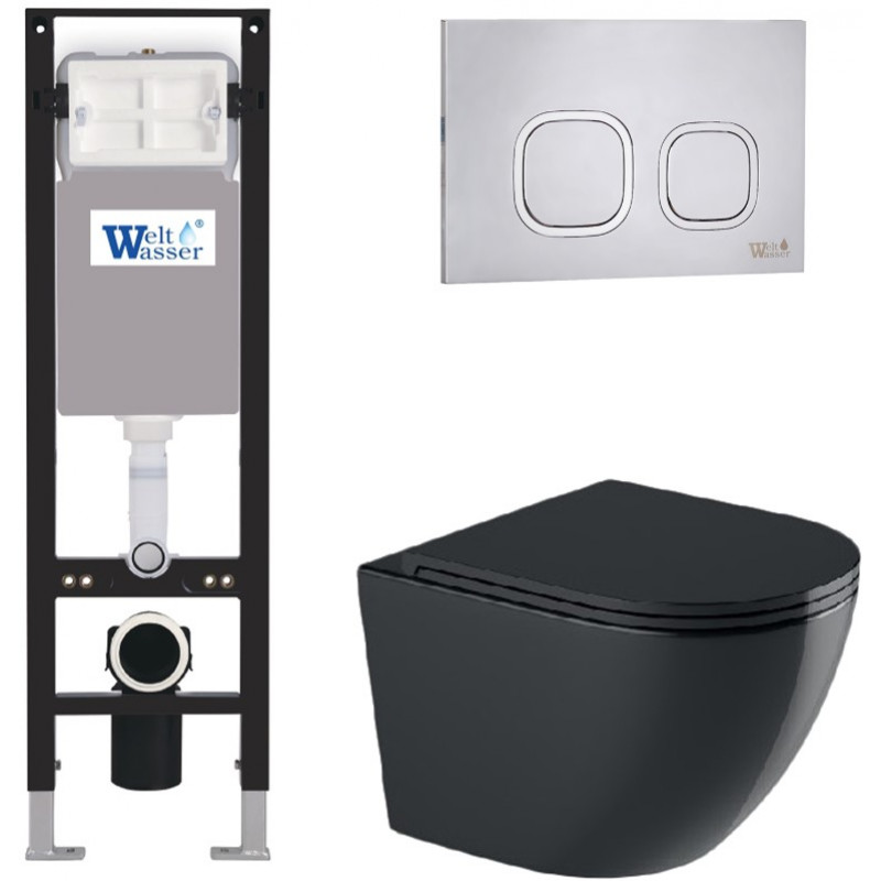 Подвесной унитаз с инсталляцией WeltWasser Amberg 350 / Merzbach 043 GL-BL / Amberg RD-MT CR 10000012371 черный глянцевый