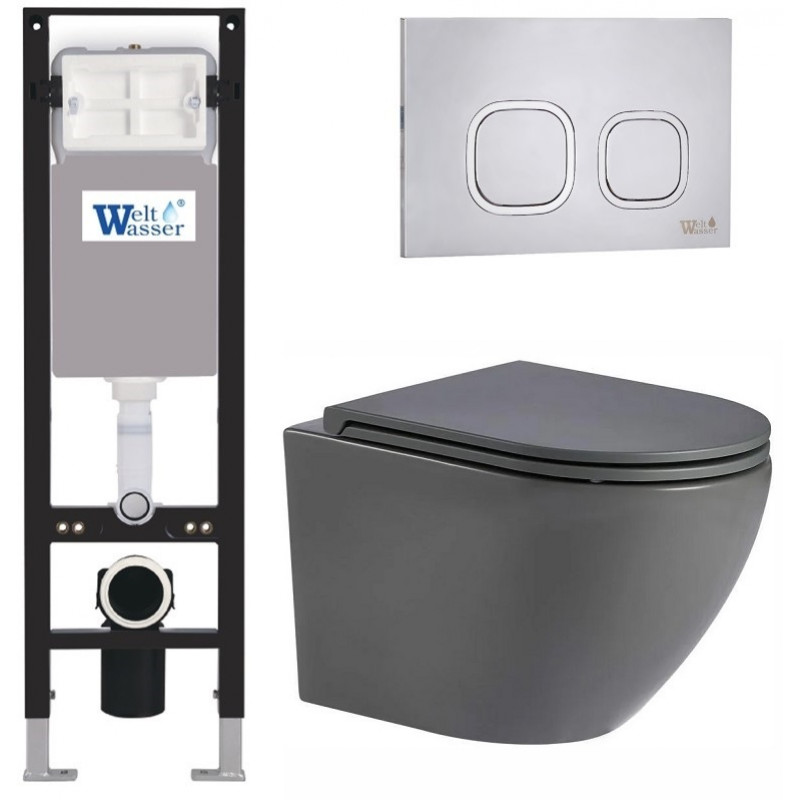 Подвесной унитаз с инсталляцией WeltWasser Amberg 350 / Merzbach 043 MT-GR / Amberg RD-MT CR 10000012386 серый матовый