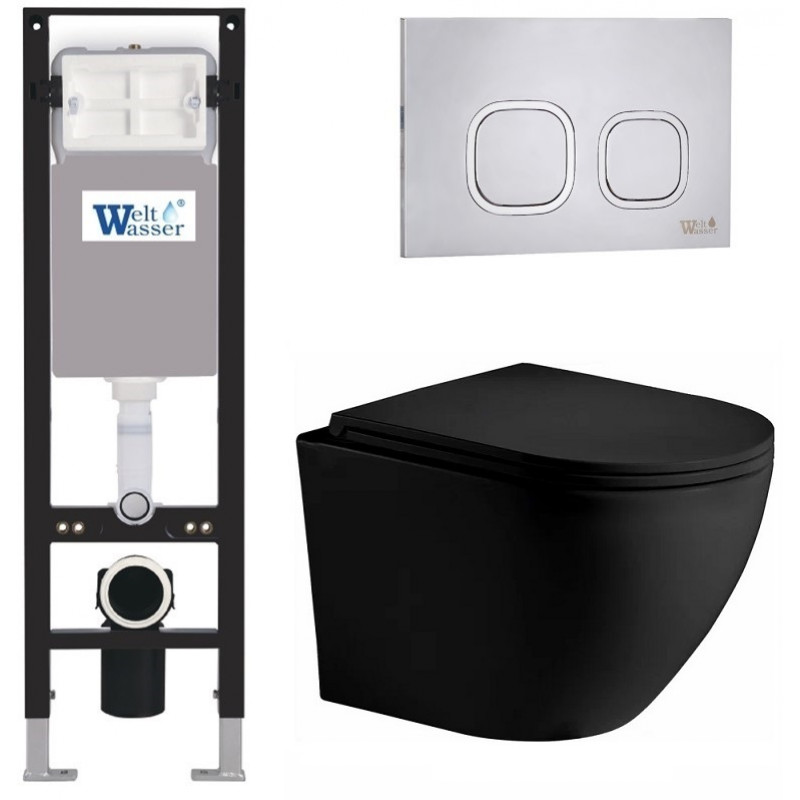 Подвесной унитаз с инсталляцией WeltWasser Amberg 350 / Merzbach 043 XL MT-BL / Amberg RD-MT CR 10000014099 черный матовый