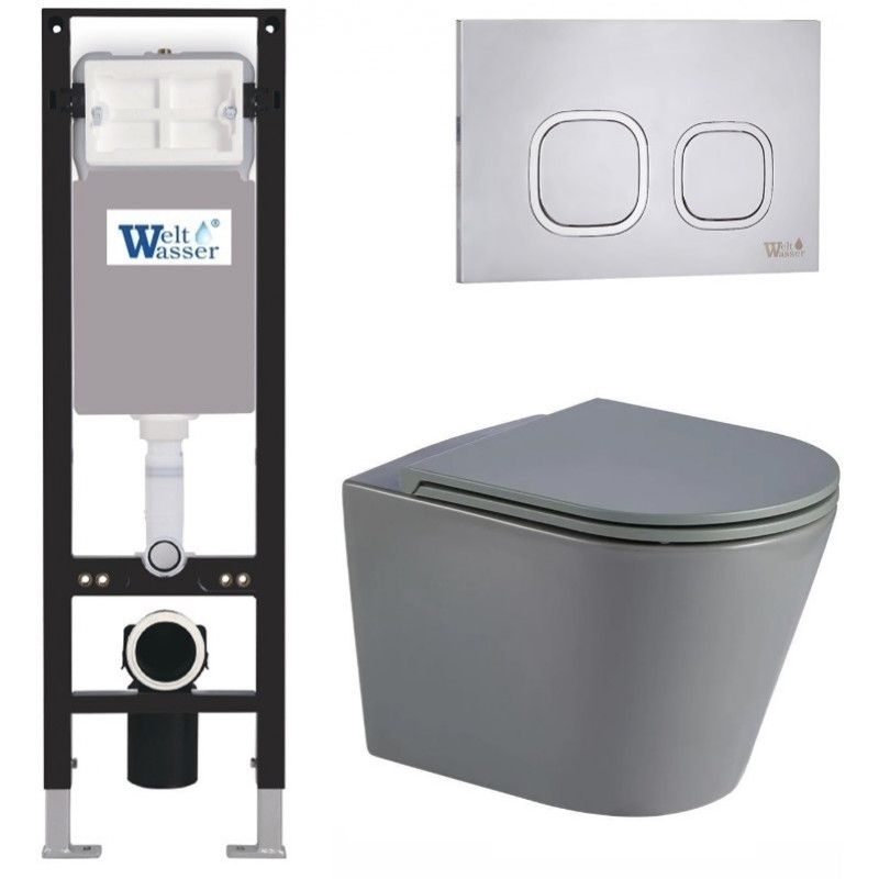 Подвесной унитаз с инсталляцией WeltWasser Amberg 350 / Salzbach 041 MT-GR / Amberg RD-MT CR 10000012421 серый матовый