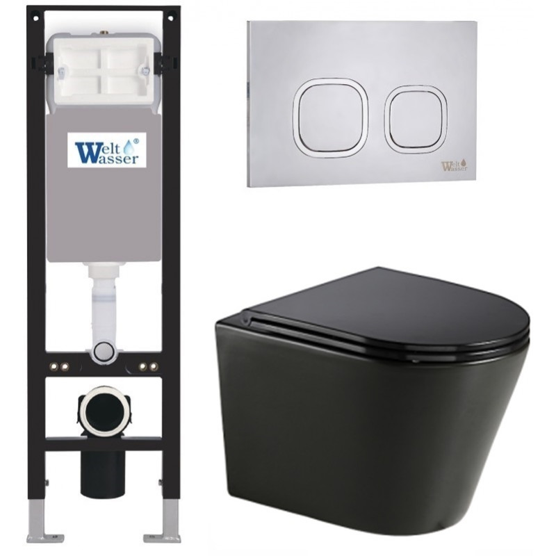 Подвесной унитаз с инсталляцией WeltWasser Amberg 350 / Salzbach 043 GL-BL / Amberg RD-MT CR 10000013454 черный глянцевый