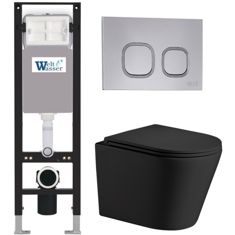 Подвесной унитаз с инсталляцией WeltWasser Amberg 350 / Salzbach 043 MT-BL / Amberg RD-CR 10000012783 черный матовый