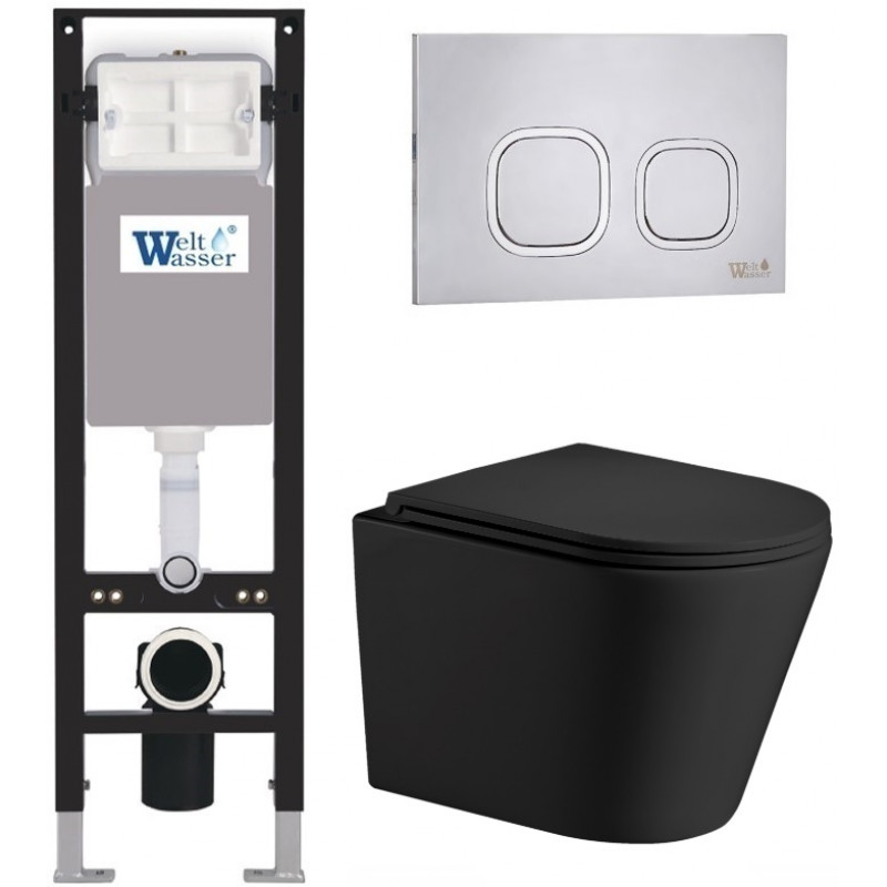 Подвесной унитаз с инсталляцией WeltWasser Amberg 350 / Salzbach 043 MT-BL / Amberg RD-MT CR 10000012782 черный матовый