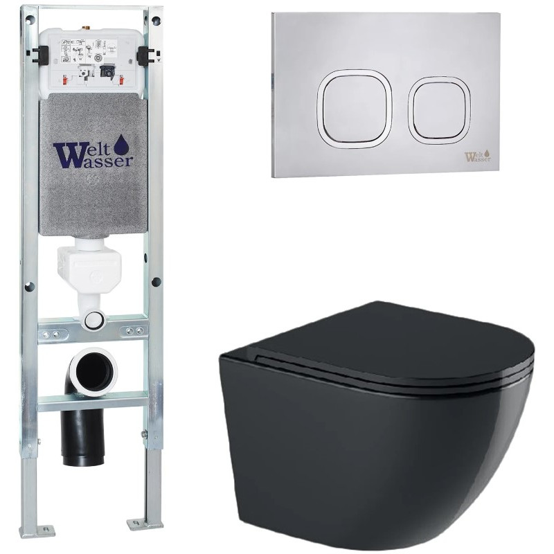 Подвесной унитаз с инсталляцией WeltWasser Amberg 350 ST / Merzbach 043 GL-BL / Amberg RD-MT CR 10000012173 черный глянцевый