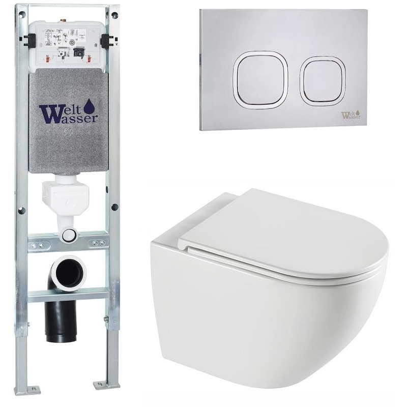 Подвесной унитаз с инсталляцией WeltWasser Amberg 350 ST / Merzbach 043 XL GL-WT / Amberg RD-MT CR 10000013763 белый глянцевый