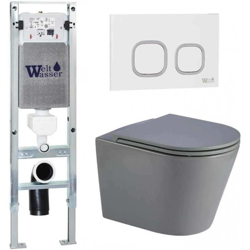 Подвесной унитаз с инсталляцией WeltWasser Amberg 350 ST / Salzbach 041 MT-GR / Amberg RD-WT 10000011091 серый матовый