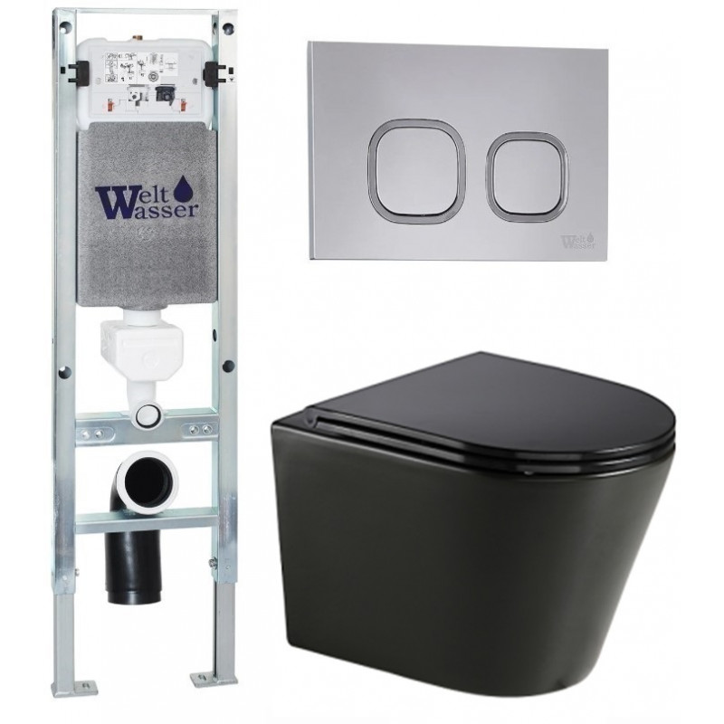 Подвесной унитаз с инсталляцией WeltWasser Amberg 350 ST / Salzbach 043 GL-BL / Amberg RD-CR 10000013458 черный глянцевый