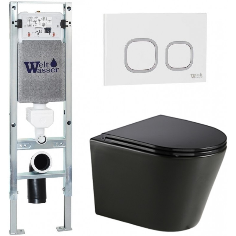 Подвесной унитаз с инсталляцией WeltWasser Amberg 350 ST / Salzbach 043 GL-BL / Amberg RD-WT 10000013460 черный глянцевый