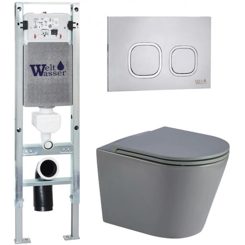 Подвесной унитаз с инсталляцией WeltWasser Amberg 350 ST / Salzbach 043 MT-GR / Amberg RD-MT CR 10000011564 серый матовый