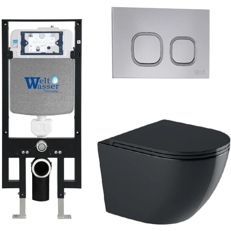 Подвесной унитаз с инсталляцией WeltWasser Amberg 497 / Merzbach 043 GL-BL / Amberg RD-CR 10000012177 черный глянцевый