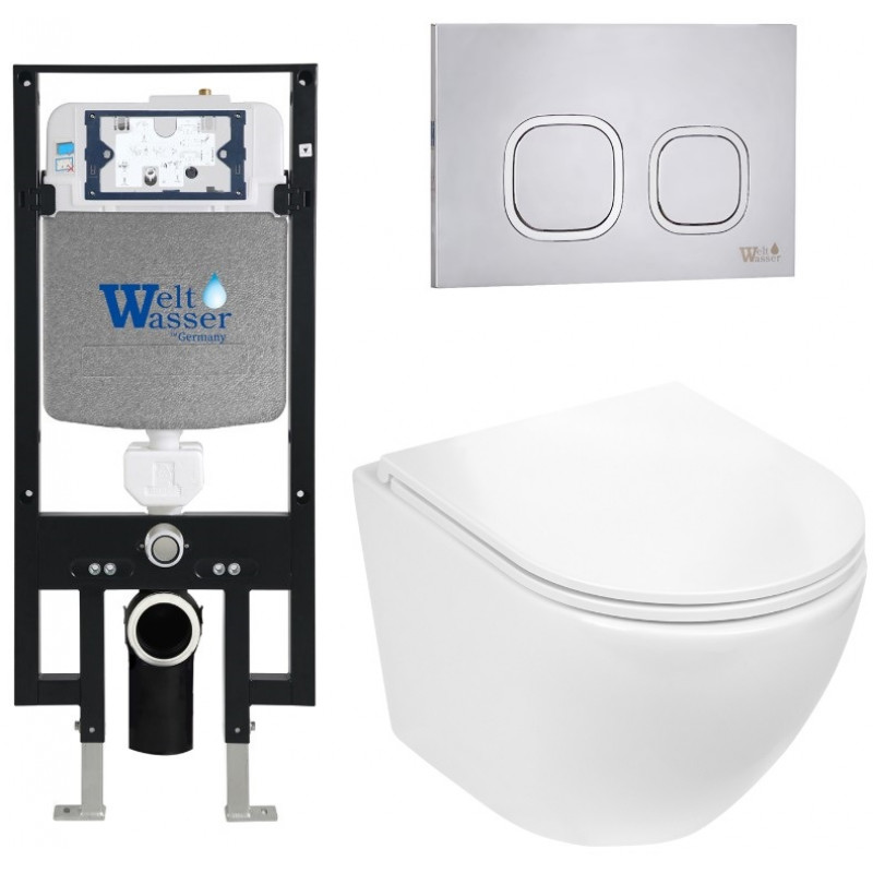 Подвесной унитаз с инсталляцией WeltWasser Amberg 497 / Merzbach 043 GL-WT / Amberg RD-MT CR 10000011289 белый глянцевый