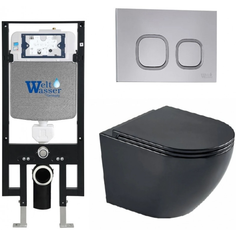 Подвесной унитаз с инсталляцией WeltWasser Amberg 497 / Merzbach 043 MT-BL / Amberg RD-CR 10000011331 черный матовый