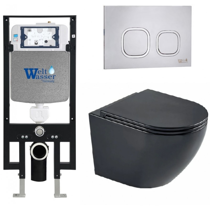 Подвесной унитаз с инсталляцией WeltWasser Amberg 497 / Merzbach 043 MT-BL / Amberg RD-MT CR 10000011332 черный матовый