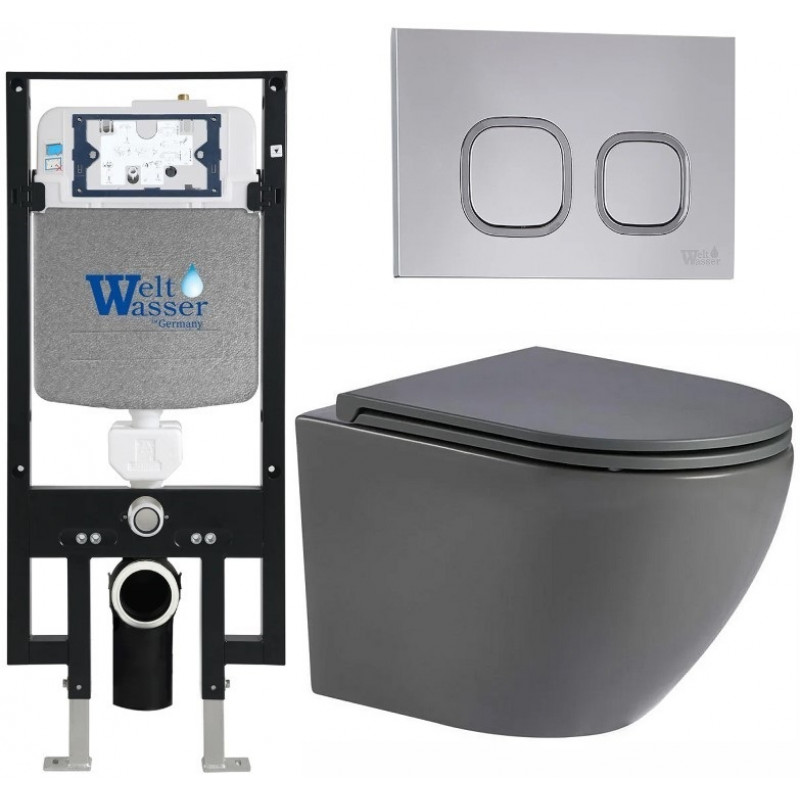 Подвесной унитаз с инсталляцией WeltWasser Amberg 497 / Merzbach 043 MT-GR / Amberg RD-CR 10000011371 серый матовый