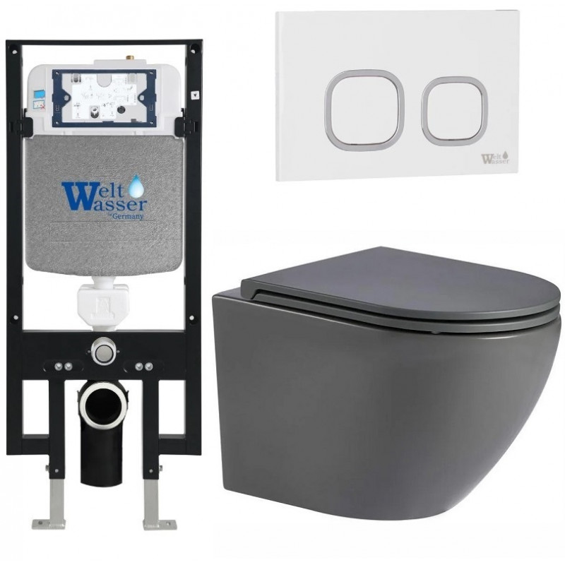 Подвесной унитаз с инсталляцией WeltWasser Amberg 497 / Merzbach 043 MT-GR / Amberg RD-WT 10000011373 серый матовый