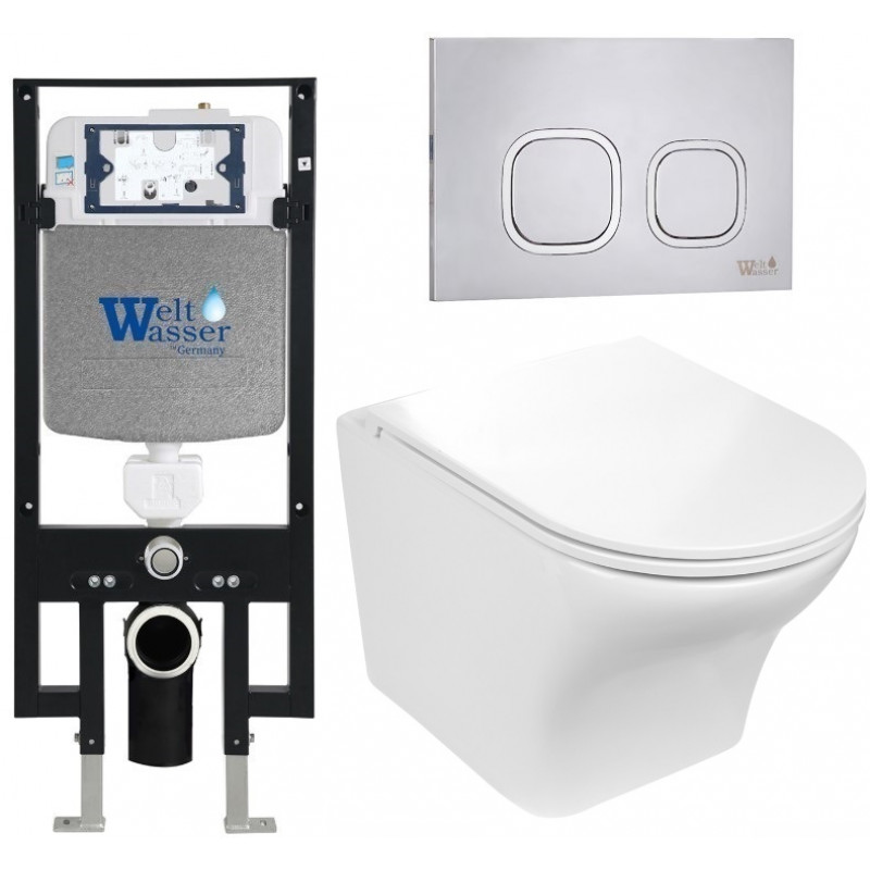 Подвесной унитаз с инсталляцией WeltWasser Amberg 497 / Odenbach 004 GL-WT / Amberg RD-MT CR 10000006653 белый глянцевый