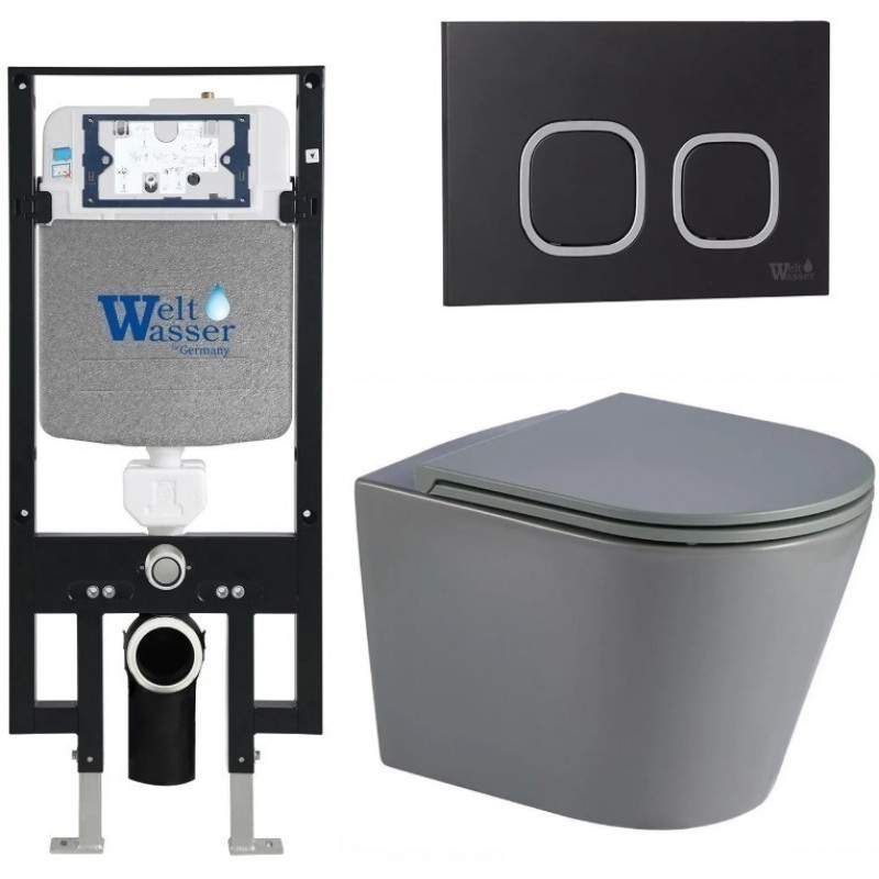 Подвесной унитаз с инсталляцией WeltWasser Amberg 497 / Salzbach 041 MT-GR / Amberg RD-BL 10000011093 серый матовый