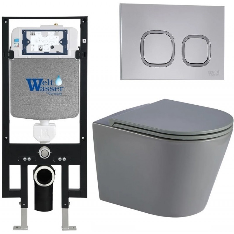 Подвесной унитаз с инсталляцией WeltWasser Amberg 497 / Salzbach 041 MT-GR / Amberg RD-CR 10000011094 серый матовый