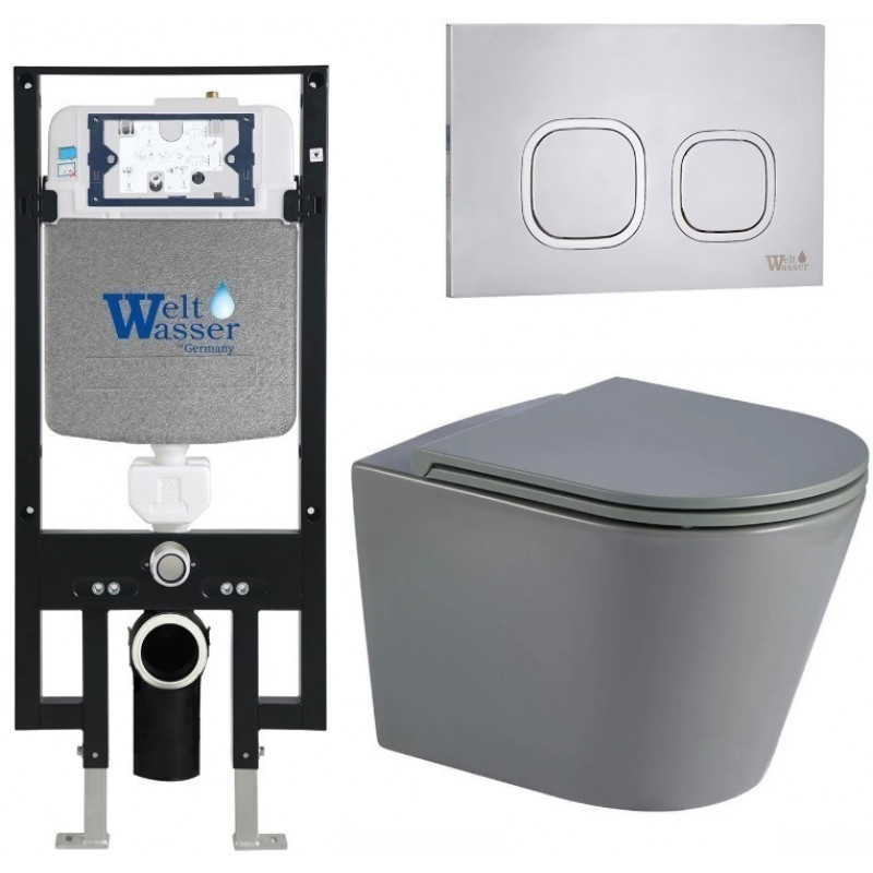 Подвесной унитаз с инсталляцией WeltWasser Amberg 497 / Salzbach 041 MT-GR / Amberg RD-MT CR 10000011095 серый матовый