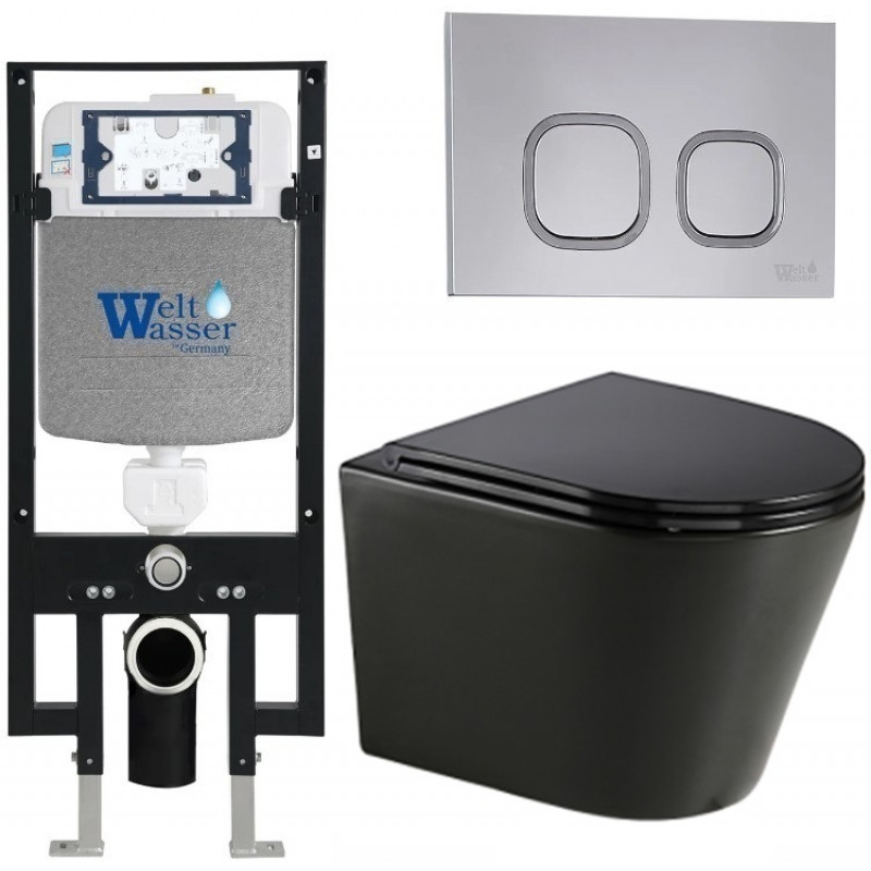 Подвесной унитаз с инсталляцией WeltWasser Amberg 497 / Salzbach 043 GL-BL / Amberg RD-CR 10000013463 черный глянцевый