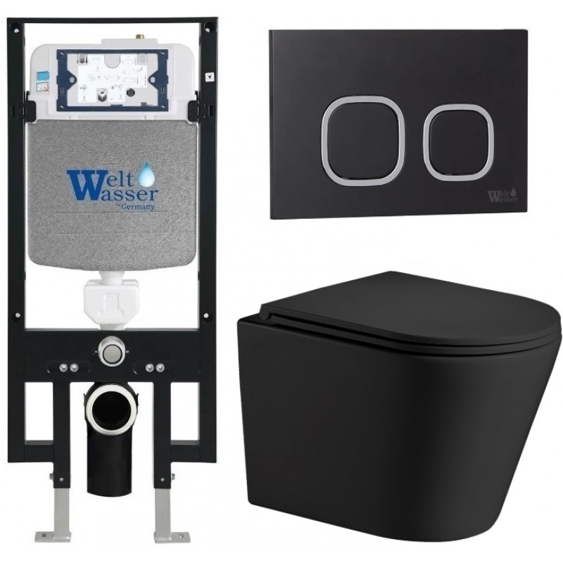 Подвесной унитаз с инсталляцией WeltWasser Amberg 497 / Salzbach 043 MT-BL / Amberg RD-BL 10000011527 черный матовый