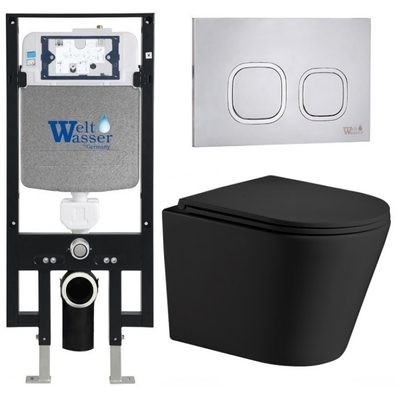 Подвесной унитаз с инсталляцией WeltWasser Amberg 497 / Salzbach 043 MT-BL / Amberg RD-MT CR 10000011529 черный матовый