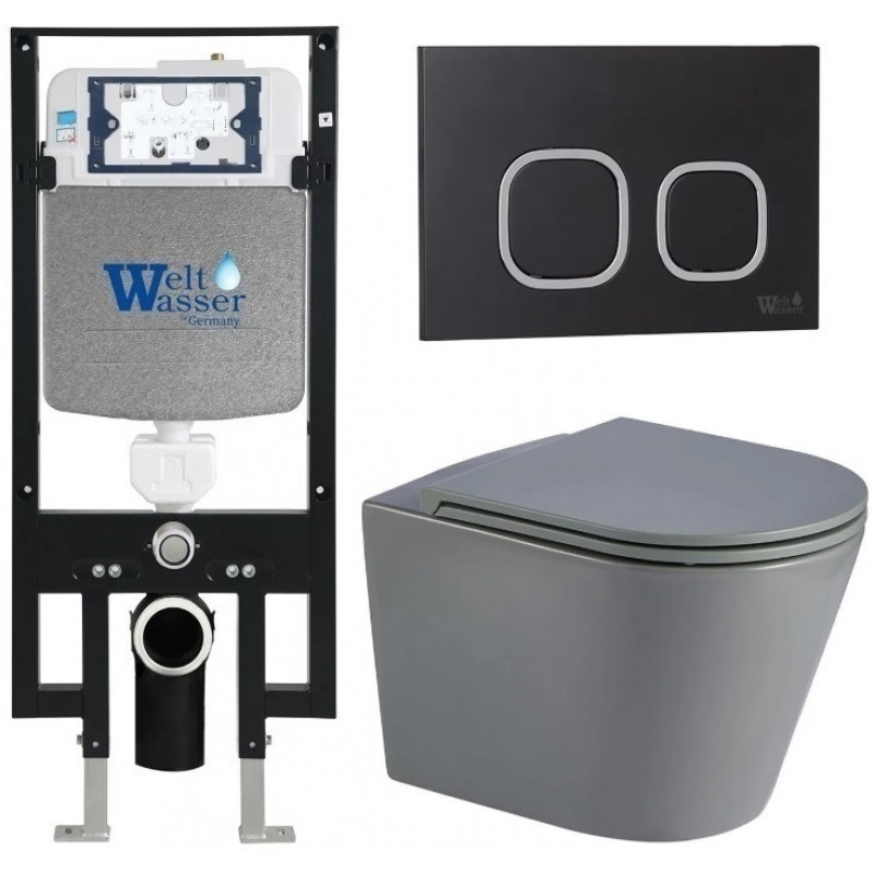 Подвесной унитаз с инсталляцией WeltWasser Amberg 497 / Salzbach 043 MT-GR / Amberg RD-BL 10000011567 серый матовый