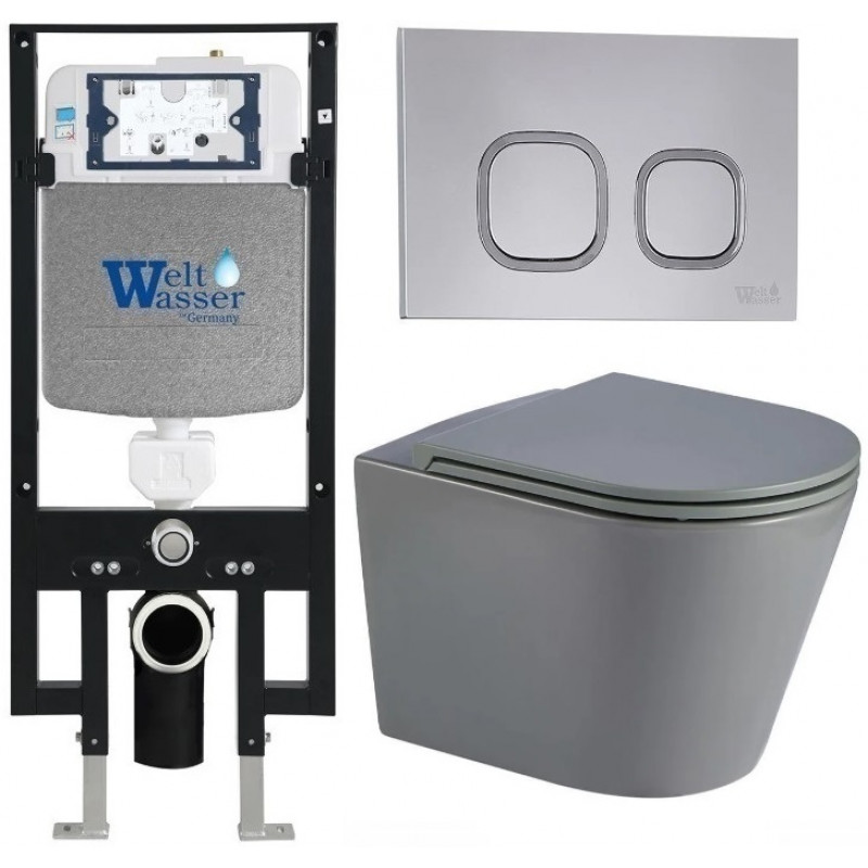 Подвесной унитаз с инсталляцией WeltWasser Amberg 497 / Salzbach 043 MT-GR / Amberg RD-CR 10000011568 серый матовый