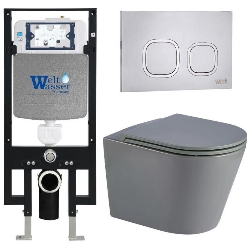 Подвесной унитаз с инсталляцией WeltWasser Amberg 497 / Salzbach 043 MT-GR / Amberg RD-MT CR 10000011569 серый матовый