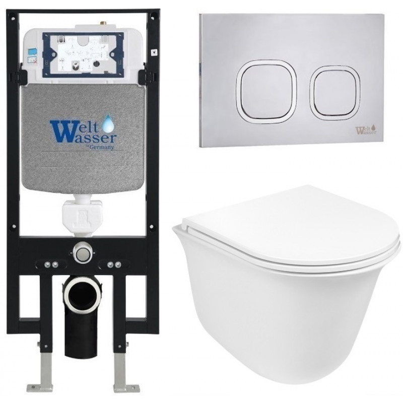 Подвесной унитаз с инсталляцией WeltWasser Amberg 497 / Telbach 004 GL-WT / Amberg RD-MT CR 10000006677 белый глянцевый