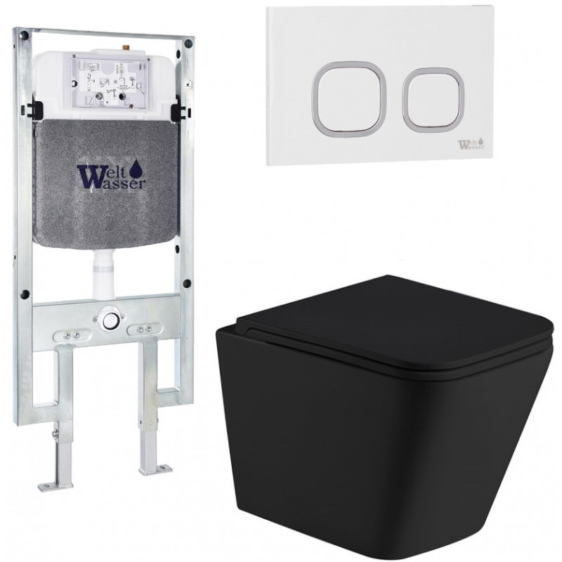 Подвесной унитаз с инсталляцией Weltwasser Amberg 497 ST / Gelbach 043 MT-BL / Amberg RD-WT 10000011983 черный матовый