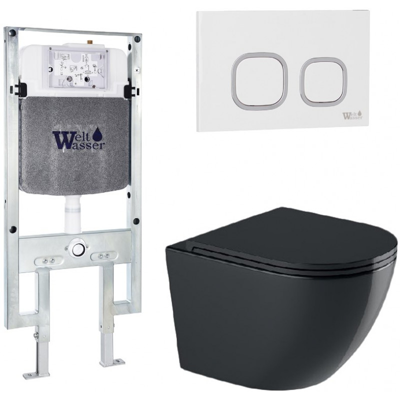 Подвесной унитаз с инсталляцией WeltWasser Amberg 497 ST / Merzbach 041 XL MT-BL / Amberg RD-WT 10000010941 черный матовый