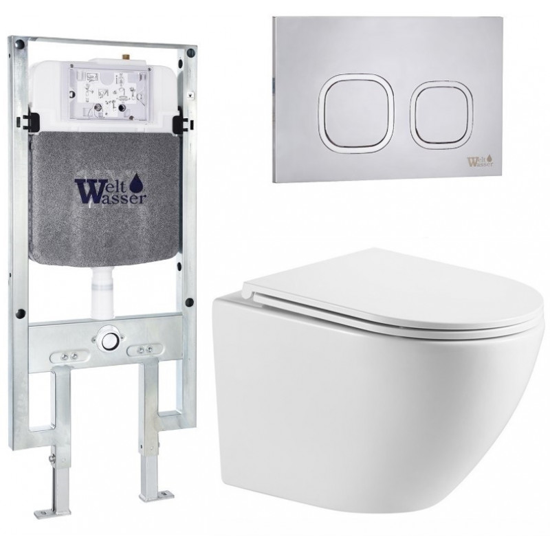 Подвесной унитаз с инсталляцией WeltWasser Amberg 497 ST / Merzbach 043 MT-WT / Amberg RD-MT CR 10000011417 белый матовый