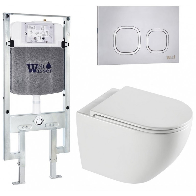 Подвесной унитаз с инсталляцией WeltWasser Amberg 497 ST / Merzbach 043 XL GL-WT / Amberg RD-MT CR 10000013773 белый глянцевый