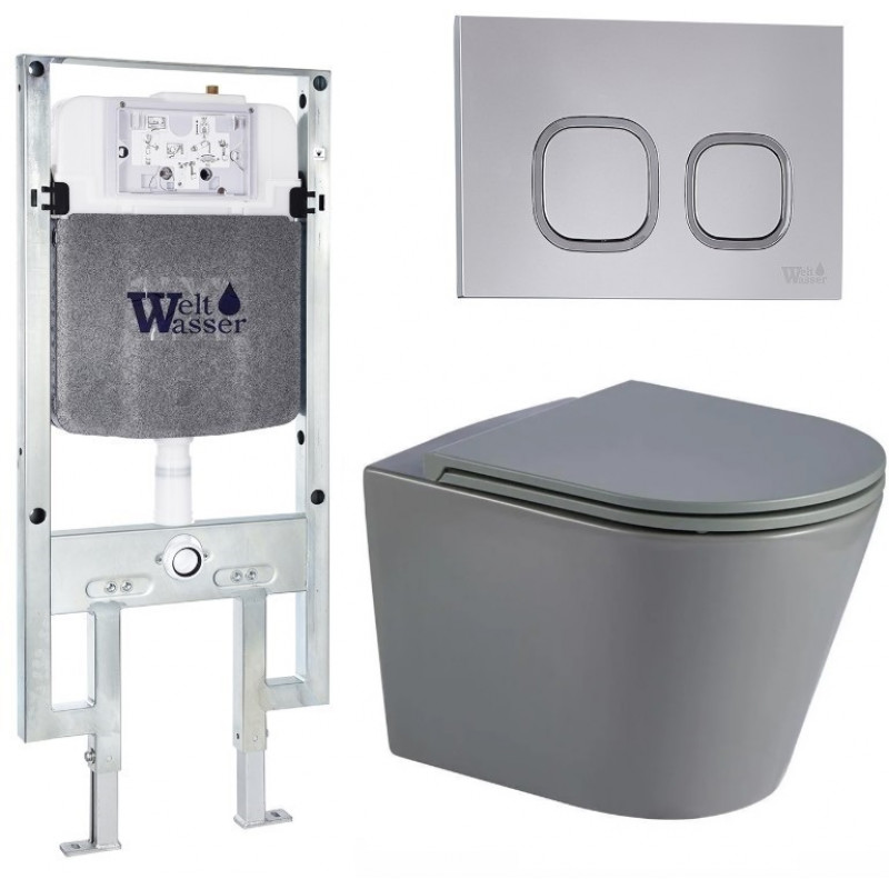 Подвесной унитаз с инсталляцией WeltWasser Amberg 497 ST / Salzbach 041 MT-GR / Amberg RD-CR 10000011099 серый матовый