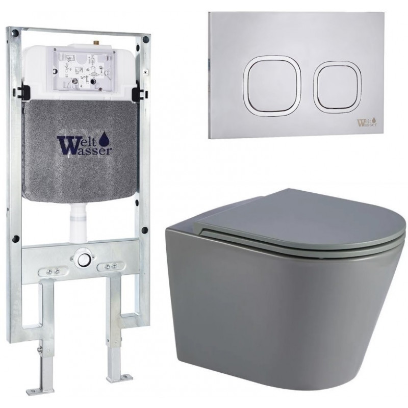 Подвесной унитаз с инсталляцией WeltWasser Amberg 497 ST / Salzbach 041 MT-GR / Amberg RD-MT CR 10000011100 серый матовый