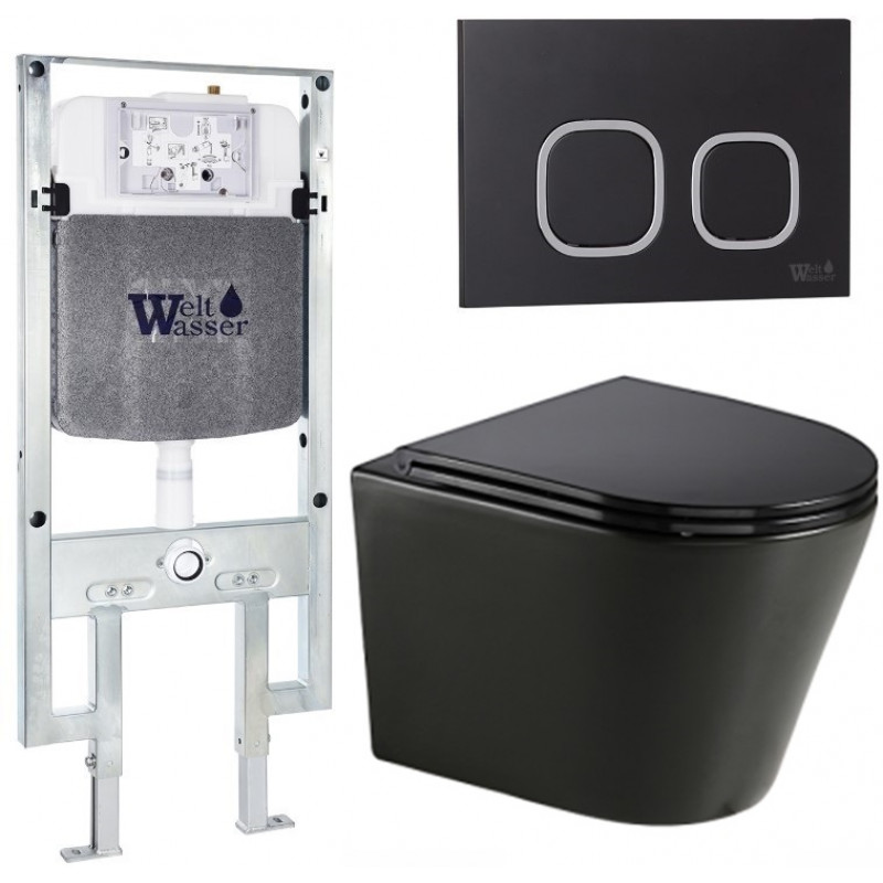 Подвесной унитаз с инсталляцией WeltWasser Amberg 497 ST / Salzbach 043 GL-BL / Amberg RD-BL 10000013467 черный глянцевый