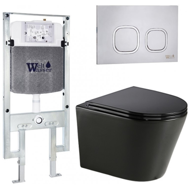 Подвесной унитаз с инсталляцией WeltWasser Amberg 497 ST / Salzbach 043 GL-BL / Amberg RD-MT CR 10000013469 черный глянцевый