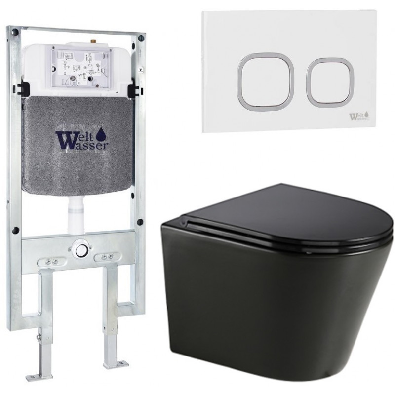 Подвесной унитаз с инсталляцией WeltWasser Amberg 497 ST / Salzbach 043 GL-BL / Amberg RD-WT 10000013470 черный глянцевый