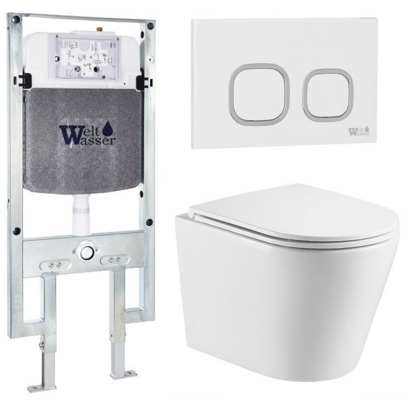 Подвесной унитаз с инсталляцией WeltWasser Amberg 497 ST / Salzbach 043 GL-WT / Amberg RD-WT 10000011497 белый глянцевый