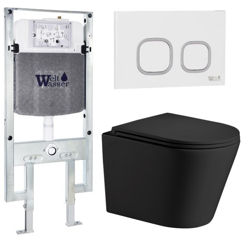 Подвесной унитаз с инсталляцией WeltWasser Amberg 497 ST / Salzbach 043 MT-BL / Amberg RD-WT 10000011535 черный матовый