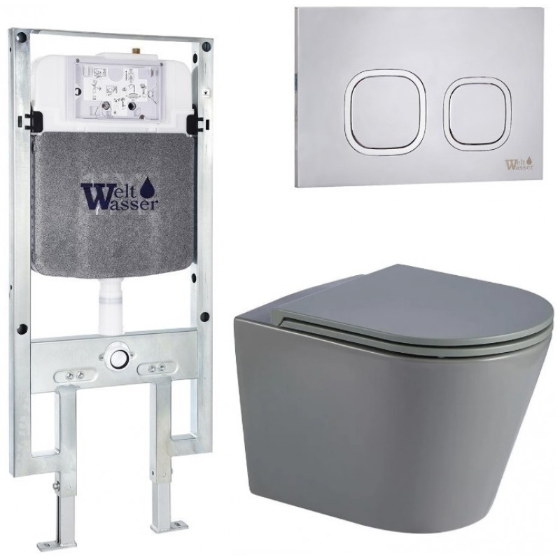Подвесной унитаз с инсталляцией WeltWasser Amberg 497 ST / Salzbach 043 MT-GR / Amberg RD-MT CR 10000011574 серый матовый