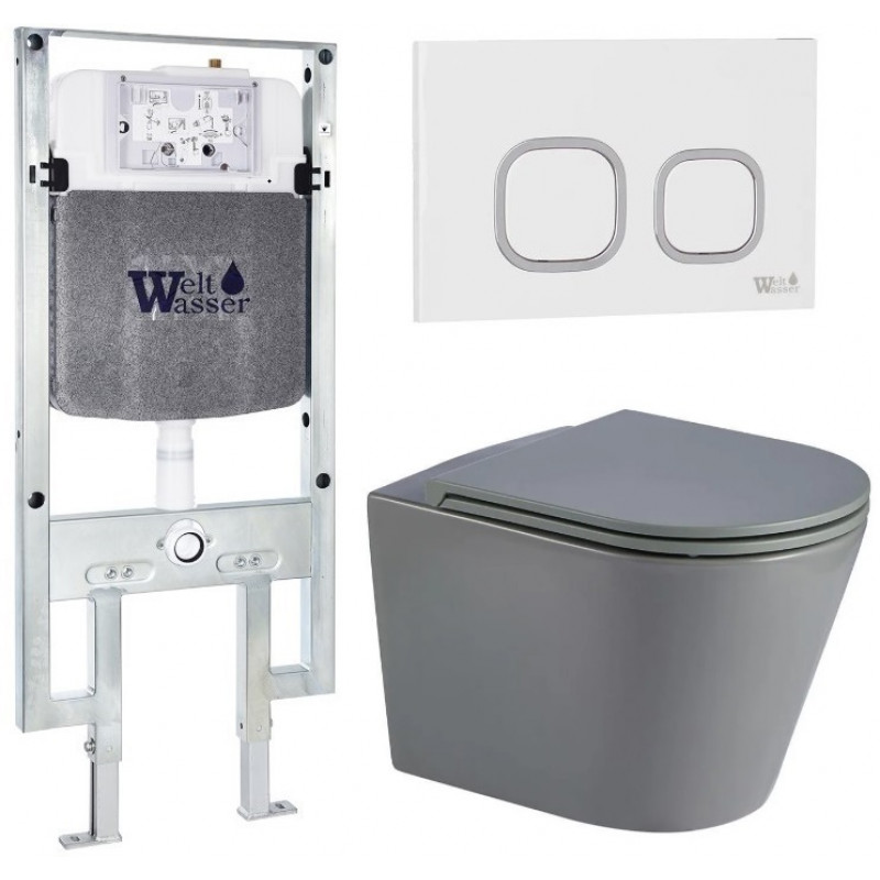 Подвесной унитаз с инсталляцией WeltWasser Amberg 506 / Salzbach 043 MT-GR / Amberg RD-MT CR 10000011579 серый матовый