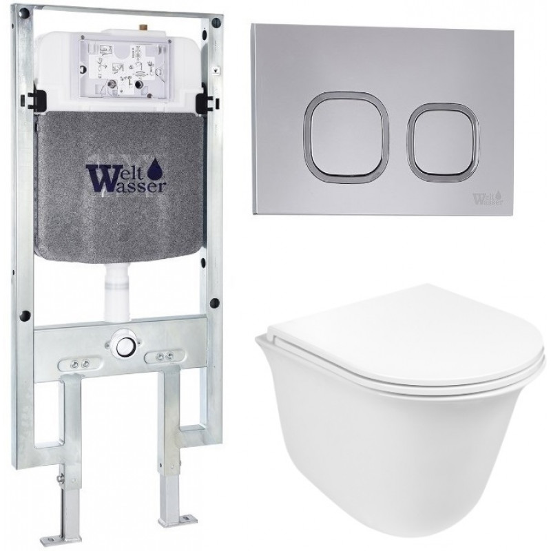 Подвесной унитаз с инсталляцией WeltWasser Amberg 497 ST / Telbach 004 GL-WT / Amberg RD-CR 10000006764 белый глянцевый