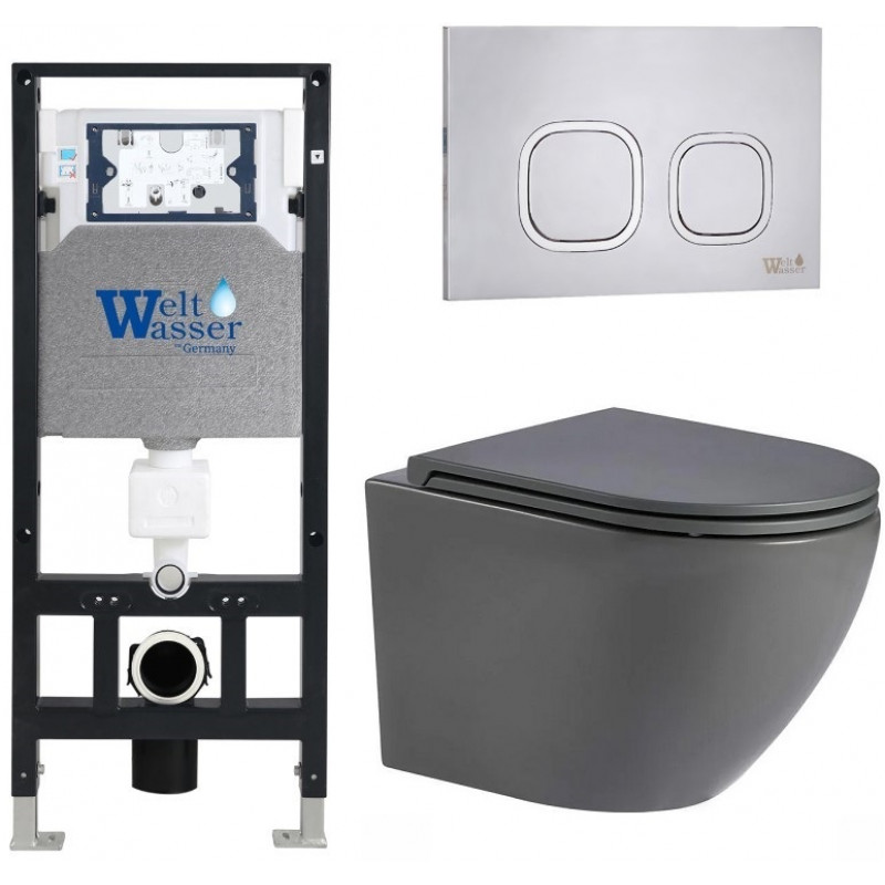 Подвесной унитаз с инсталляцией WeltWasser Amberg 506 / Merzbach 043 MT-GR / Amberg RD-MT CR 10000011382 серый матовый
